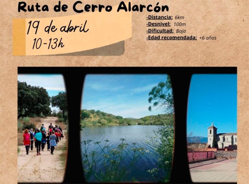 Y pensando en responder mejor a la demanda de los más aficionados a apuntarse a este tipo de rutas, la concejalía ha programado incluso una segunda propuesta también para este mes, la Ruta de Cerro Alarcón. Con ella se abre la oportunidad de avanzar por otra zona de la localidad para mostrar el contraste que ofrece este otro entorno natural. En concreto, será el domingo 19, desde las 10 a las 13h, cuando se recorran los seis cómodos kilómetros de esta ruta, que presenta baja dificultad, lo que la hace asequible también a los pequeños, a partir de los 6 años. El detalle del punto de encuentro para dar salida a la actividad, así como otros aspectos de la misma, se podrán confirmar en el momento de efectuar la reserva previa, requisito que siempre resulta indispensable para poder participar en estas rutas.
