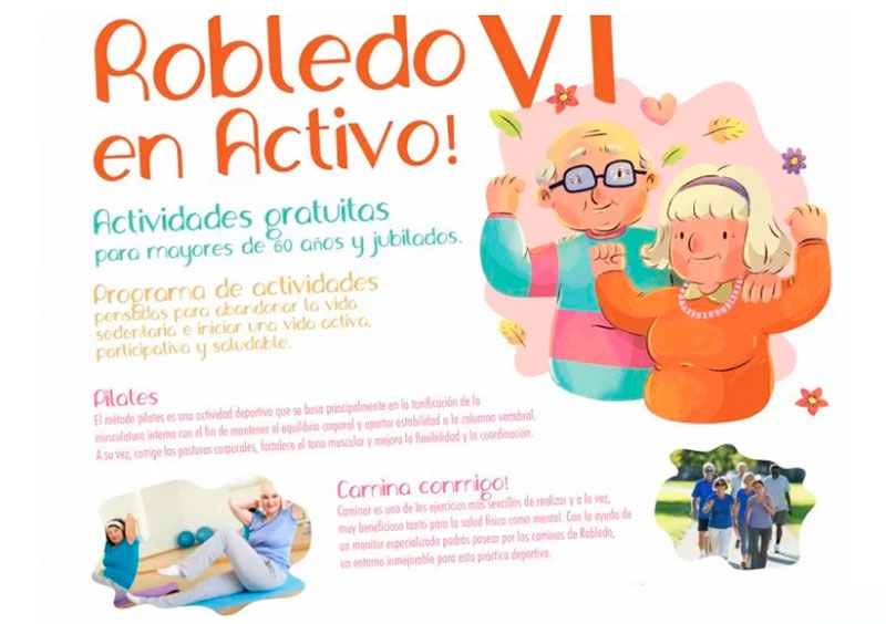 El Ayuntamiento de Robledo de Chavela, a través de la Concejalía de Personas Mayores, informa de la puesta en marcha de una nueva edición de Robledo en Activo, un programa de actividades gratuitas destinadas a personas mayores de 60 años y pensadas para abandonar la vida sedentaria e iniciar una vida activa, participativa y saludable.