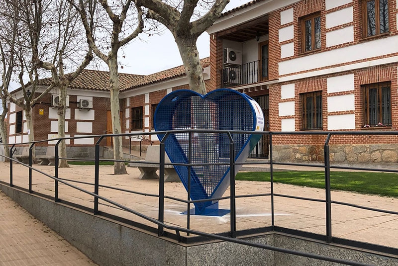 Quijorna | El Ayuntamiento instala un contenedor con forma de corazón para recoger tapones de plástico