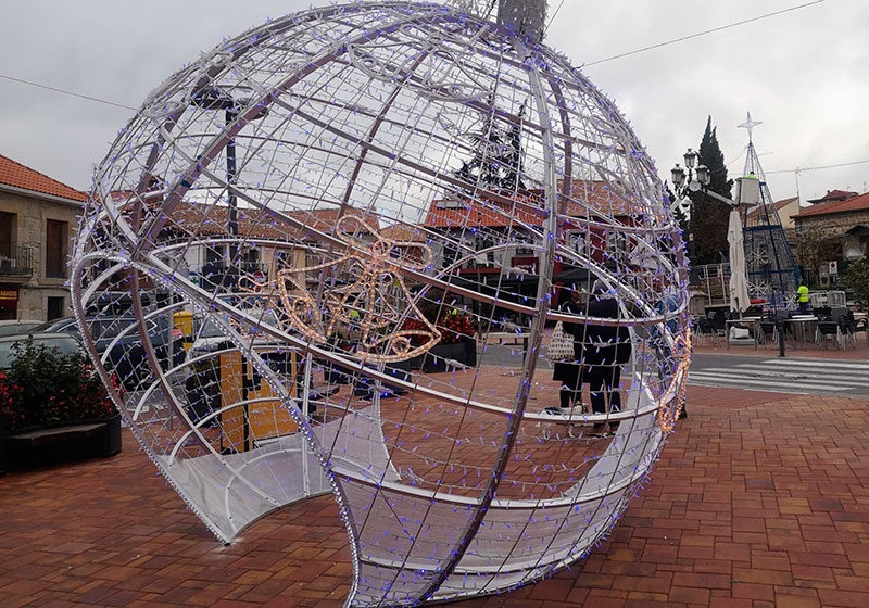 Con la Plaza de la Constitución como epicentro de la Navidad, luciendo en ella además del pino luminoso que alcanza los 9 metros de altura una enorme esfera situada a las puertas del Ayuntamiento, Valdemorillo comenzará a hacer brillar su particular imagen navideña desde este viernes, momento en el que, ya anocheciendo, se procederá al encendido oficial del alumbrado especial propio de estas entrañables fechas. Una iluminación que se distribuirá por las diferentes vías y calles donde se han instalado los más diversos elementos, en total, 24 arcos luminosos con diferentes composiciones y colorido, 7 letreros de felicitación de estas Fiestas repartidos por todo el término, 30 motivos en farolas y veinte guirnaldas para báculos, además de varias estructuras lumínicas de gran formato, y el arbolado urbano, en concreto cerca de una veintena de ejemplares, que también se llenarán de luz durante las próximas semanas.